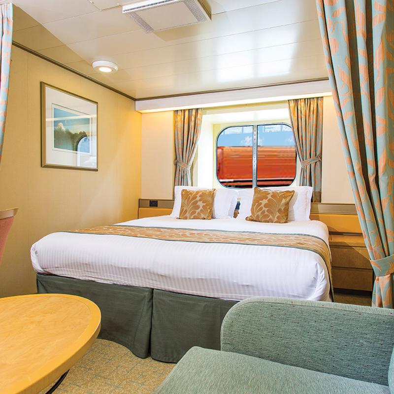 The ship holds a capacity of 2,094 guests and 866 crew members. She may be the oldest however, she has every accommodation to suit every need. She’s home to 1,050 cabins including 162 Inside, 166 Sea view, 650 Deluxe Balcony, 31 Mini-suite, 35 Suite and 6 Single cabins.