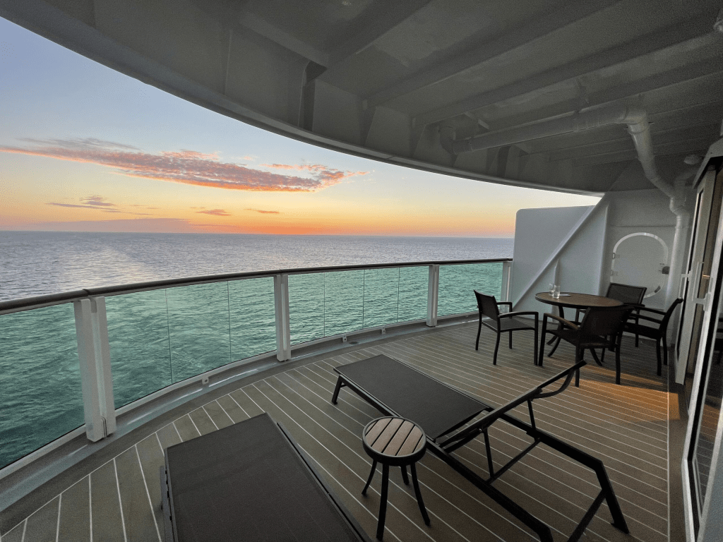 Arvia have utilized the space and created cabins frontward facing, which could be a problem with regards to wind. Weather is never guaranteed so it is a big risk choosing these cabins, it is also the main reason why other cruise ships don’t have forward facing cabins. The cabins to void are 8101 to 8108, 9102 to 9109, 10101 to 10108, 11101 to 11108, 12103 to 12110, 14101 to 14110 and lastly 15101 to 15108. If the weather is deemed too windy then a storm door will be closed across your balcony, causing you not to be able to go outside. However, there is a small window which you will be able to see out of but, if you are travelling to the Caribbean in hurricane season you definitely need to avoid this cabin. These balconies are slightly larger than the others and some people love to see where the ship is going.