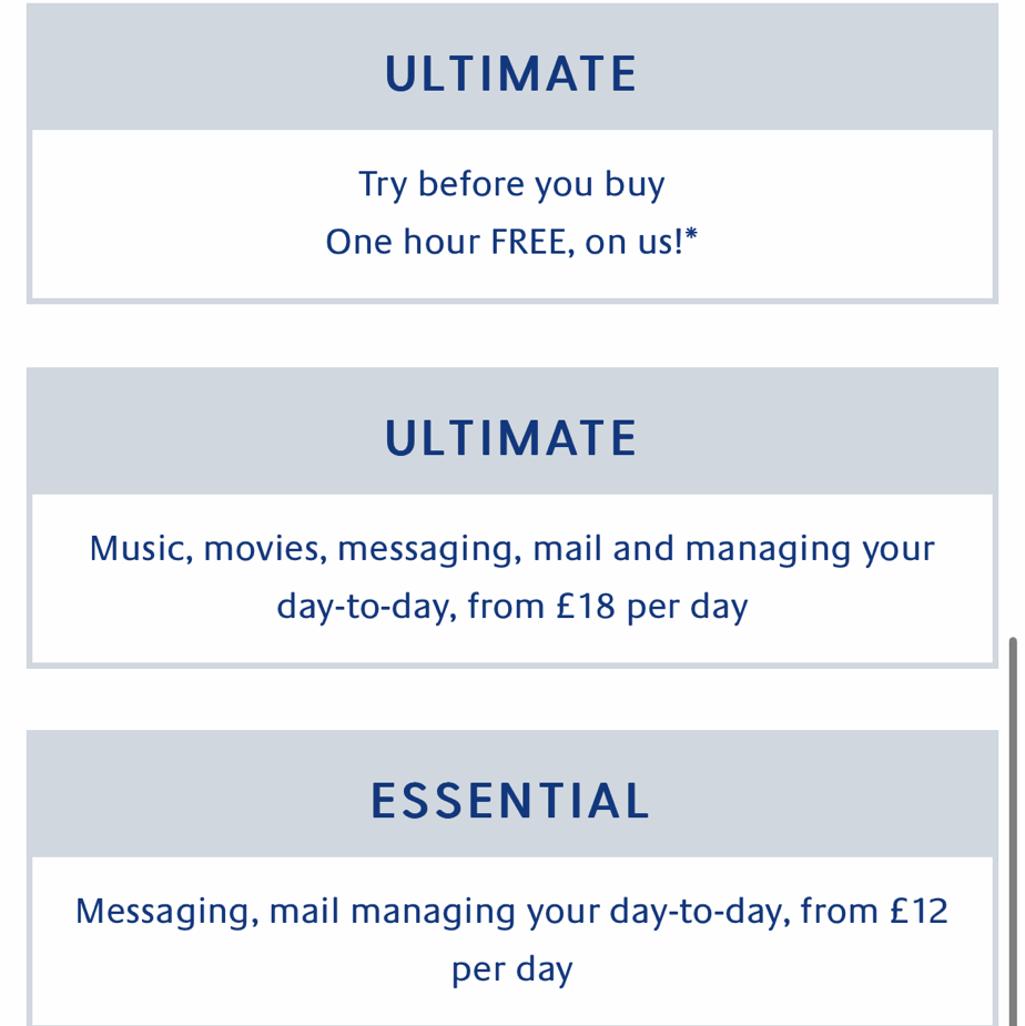 Cruise ships offer a couple options when using Wi-Fi, either being a day to day rate or the whole duration of the cruise. If booking this prior to boarding it may be cheaper than paying on board day to day or the whole duration last minute. There may be an option to pay for more than one device, so if you are a family it might become more costly the more devices you are adding. Even with the minimal package it an still be expensive.