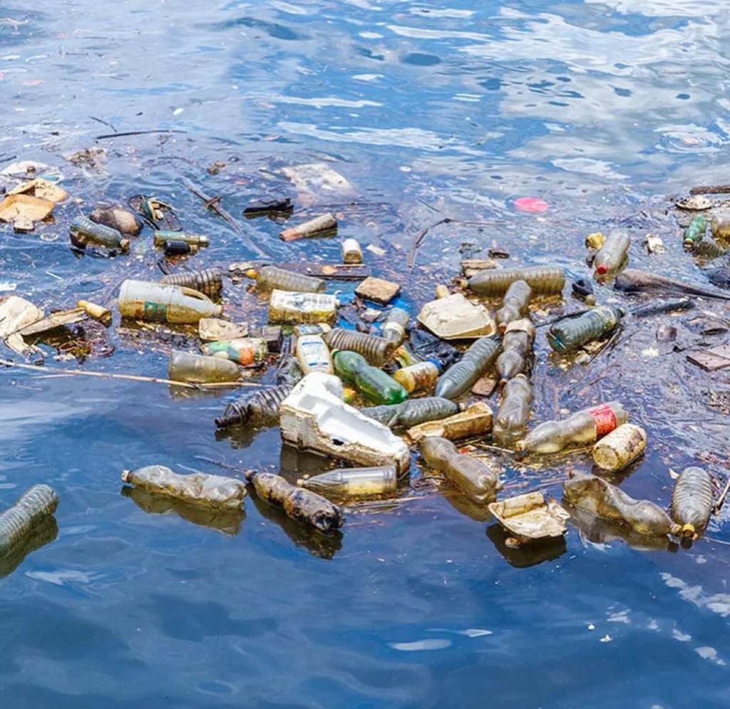 Discarding rubbish into the ocean