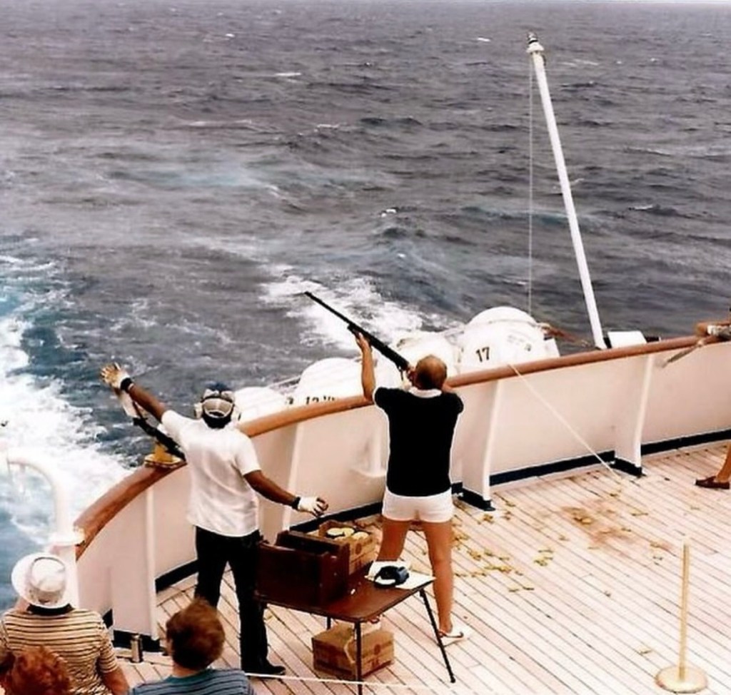 Clay Pigeon shooting became less popular due to environmental and safety reasons in the 1980’s, and stopped completely on cruise ships in the 1990’s. Modern-day Health and safety protocols don’t allow passengers to bring any kind of firearms onboard, especially when drinking is allow onboard too.