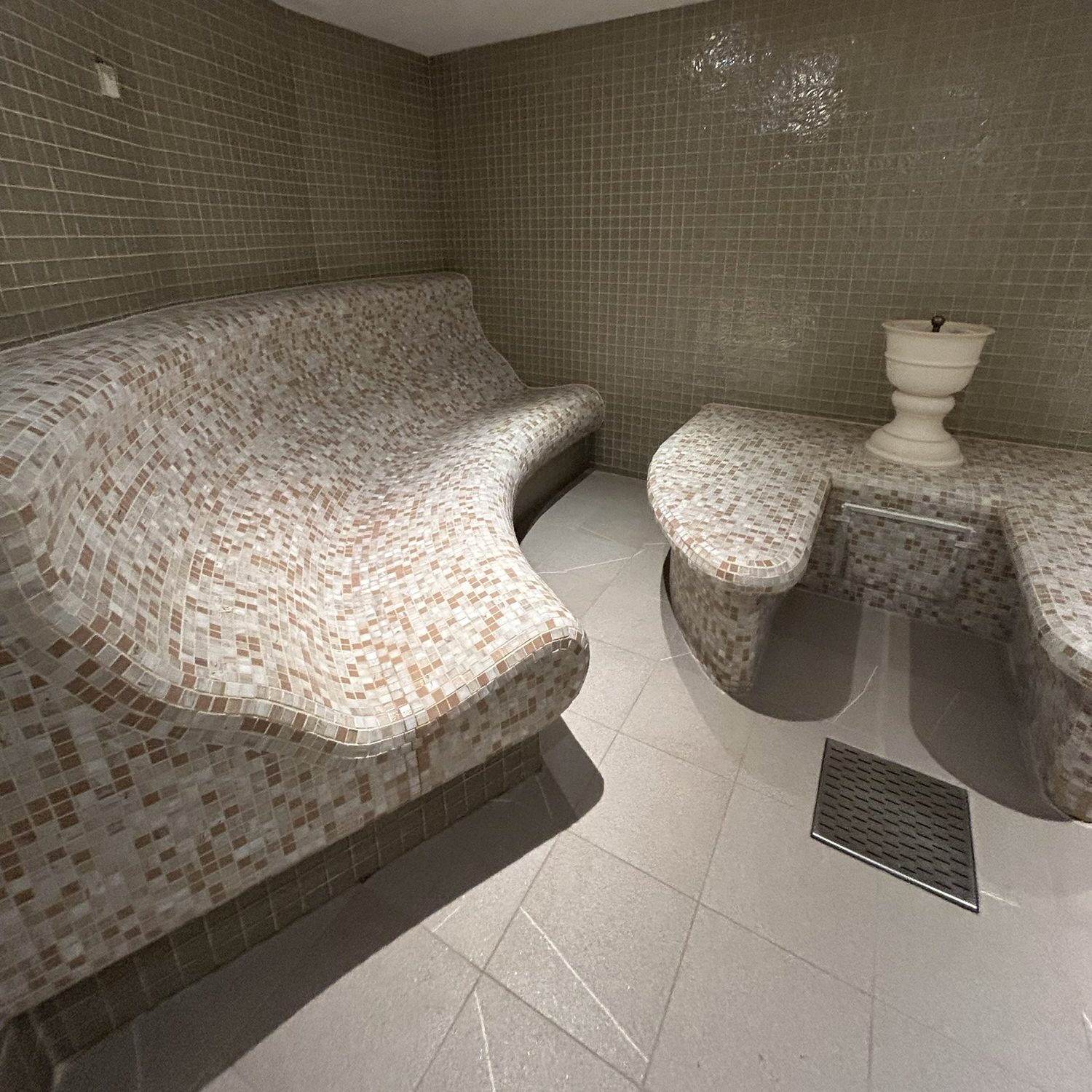 The Thermal Suite onboard the Azura houses; 4 steam rooms, 5 thermal beds, 2 shower facilities, toilets and towels to use. Upstairs you have access to the locker room and lockers which also has its own sauna and steam room for public access.